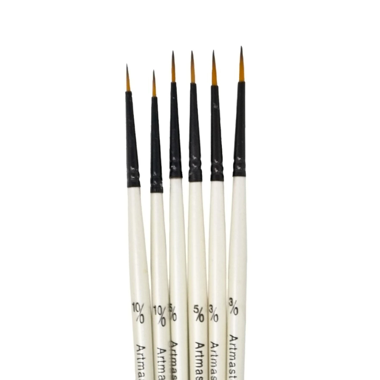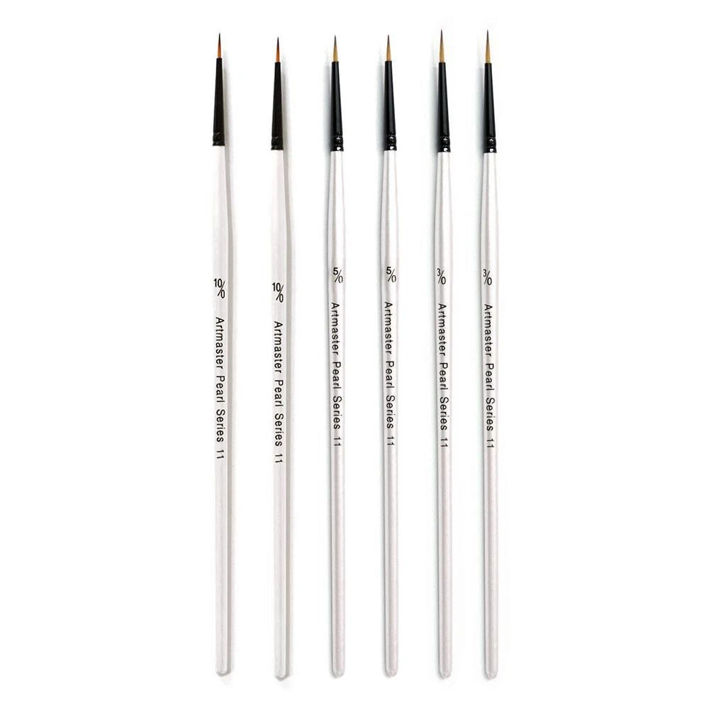 A set of 6 fine detail brushes perfect for watercolour painting. This set contains 2 each of 3 sizes (10/0, 5/0 and 3/0) and are ideal for creating very small brush strokes, finishing touches and the finest of details.