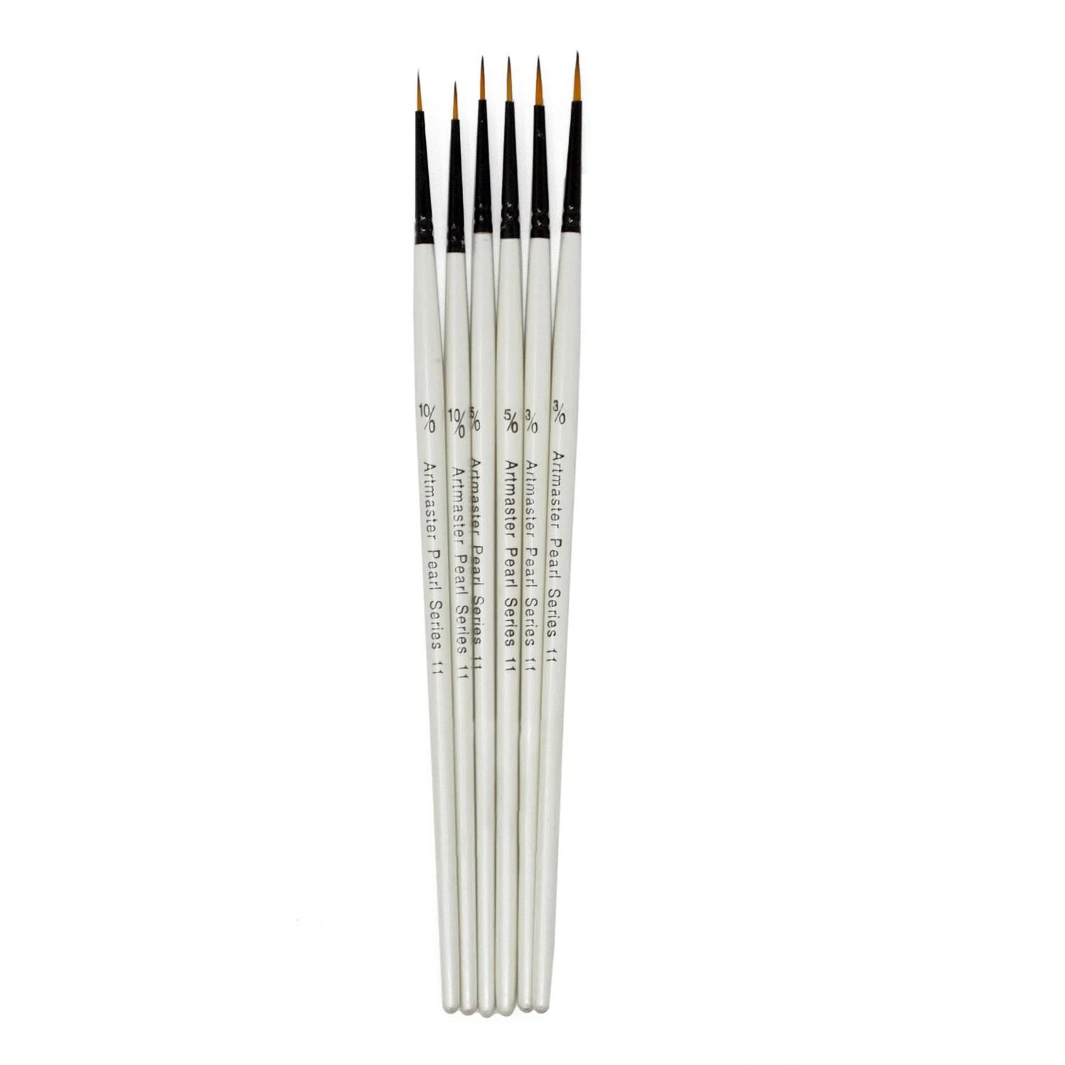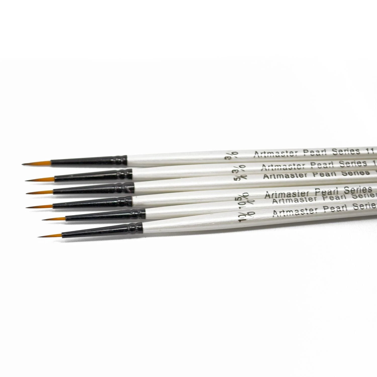 Each brush handle is slightly tapered for comfortable grip and lacquered for protection. The Pearl Series brushes have a white pearlized handle embossed with the size and design for easy identification.