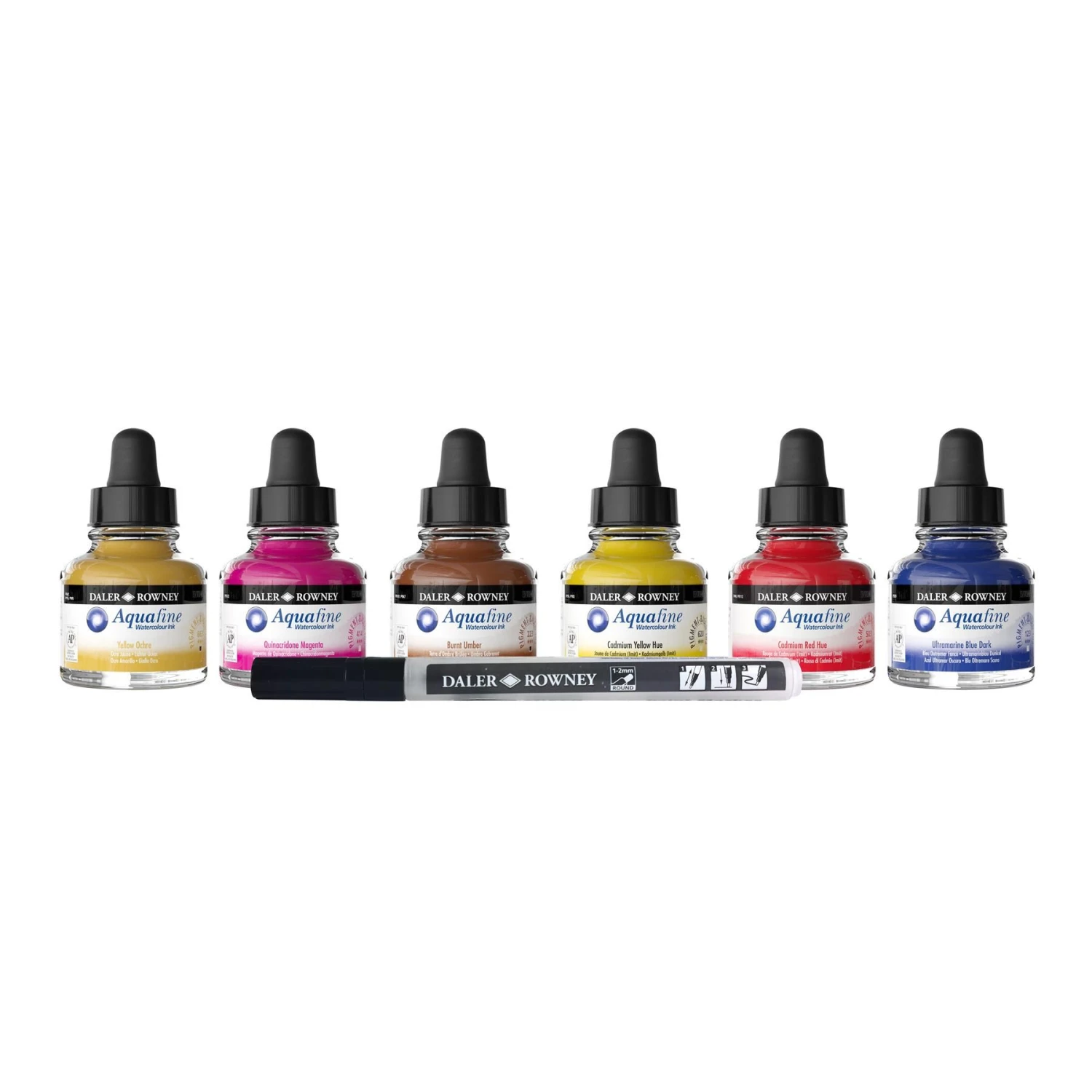 Daler-Rowney Aquafine Watercolour Ink is a pigmented, water soluble ink range with a high degree of light fastness and intermixability. Aquafine Ink can be used straight out of the dropper, or diluted to achieve the most subtle of tones.