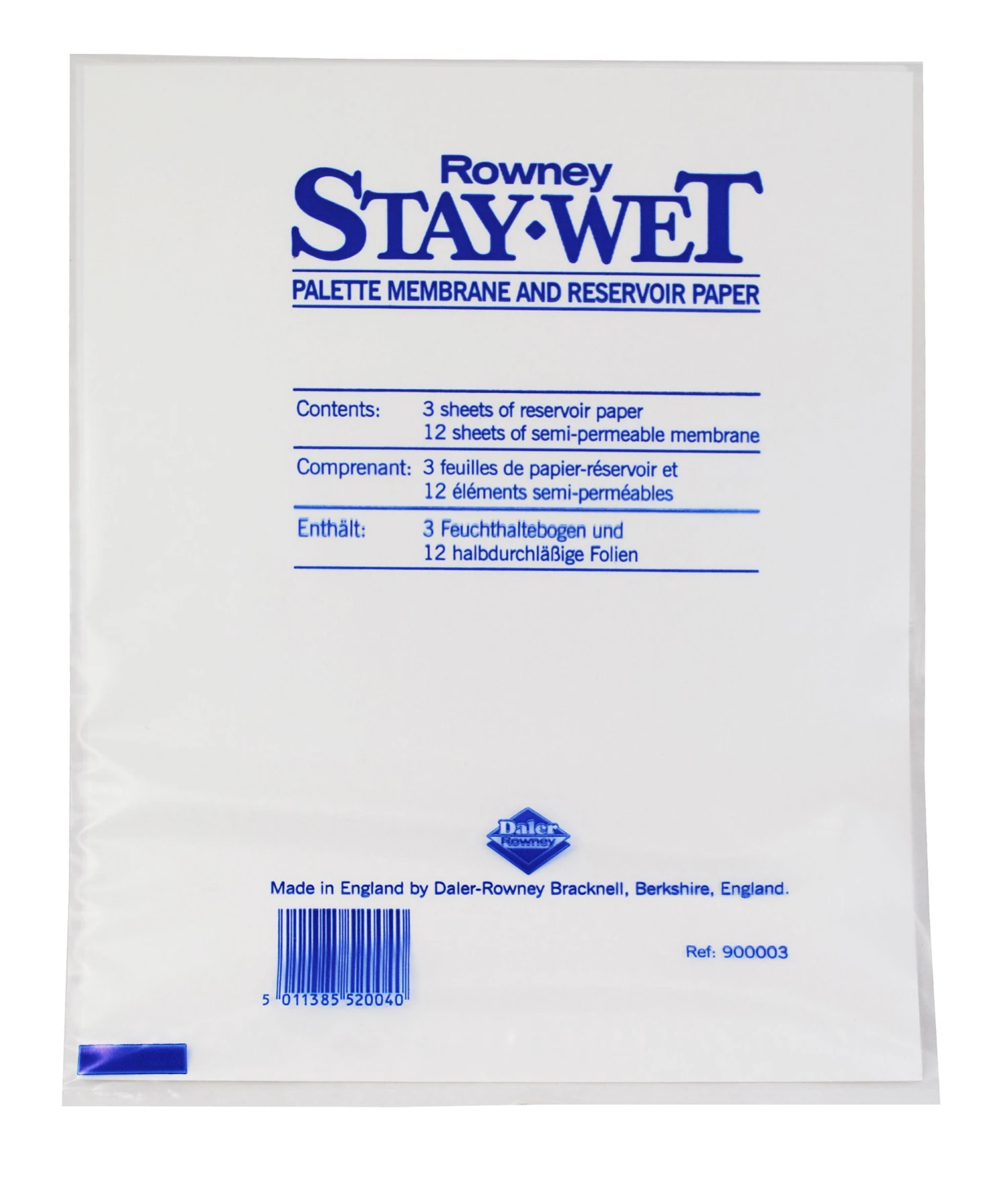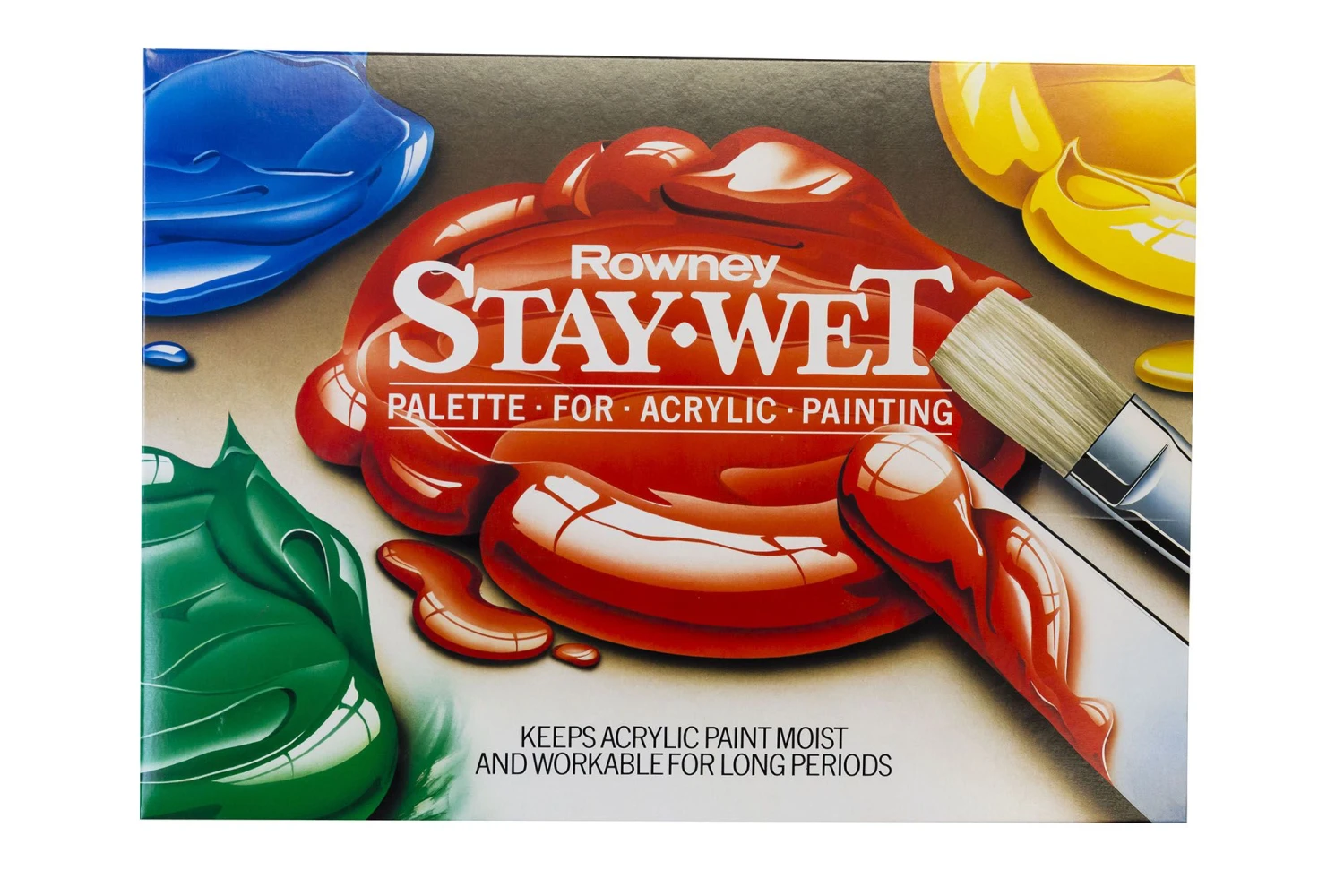 The Rowney Stay Wet Palette works by osmosis. Acrylic colours dry solely by evaporation, but when applied to the membrane of a Rowney Stay-Wet palette, the water lost by evaporation is replaced by the moisture penetrating through the semi-permeable membrane from the reservoir paper.