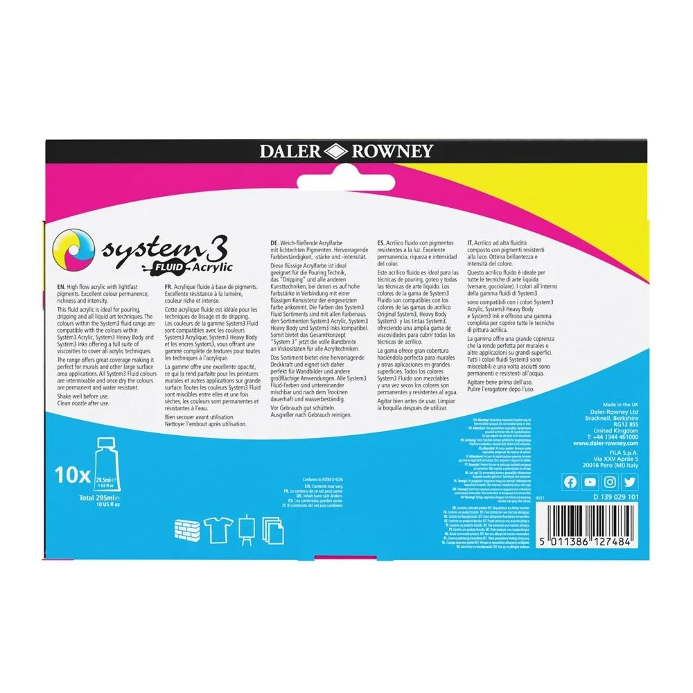 This fluid acrylic is ideal for pouring, dripping and all liquid art techniques. The colours within the System 3 fluid range are compatible with the colours within System 3 Acrylic, System 3 Heavy Body and System 3 Inks, offering a full suite of viscosities to cover all acrylic techniques.
