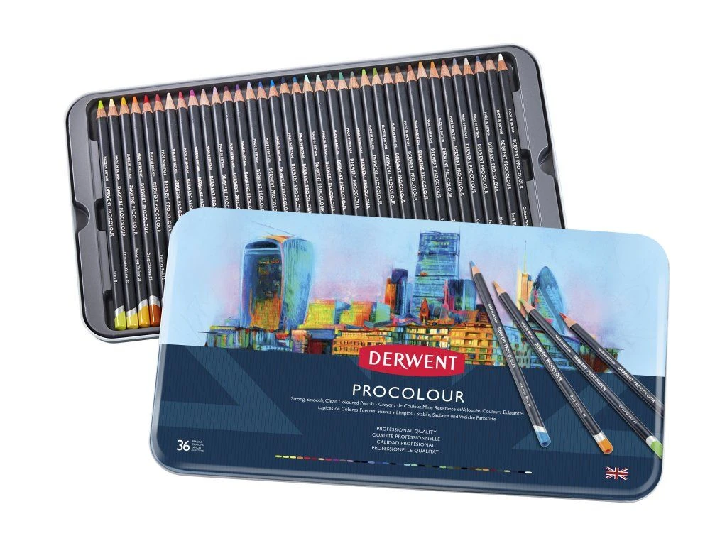 Derwent Procolour is the latest addition to Derwent’s professional range of coloured pencils. Procolour combines the best of the Artists and Coloursoft ranges, featuring the strong point of Artists with the laydown of Coloursoft – giving artists long-lasting precision with a smooth laydown.