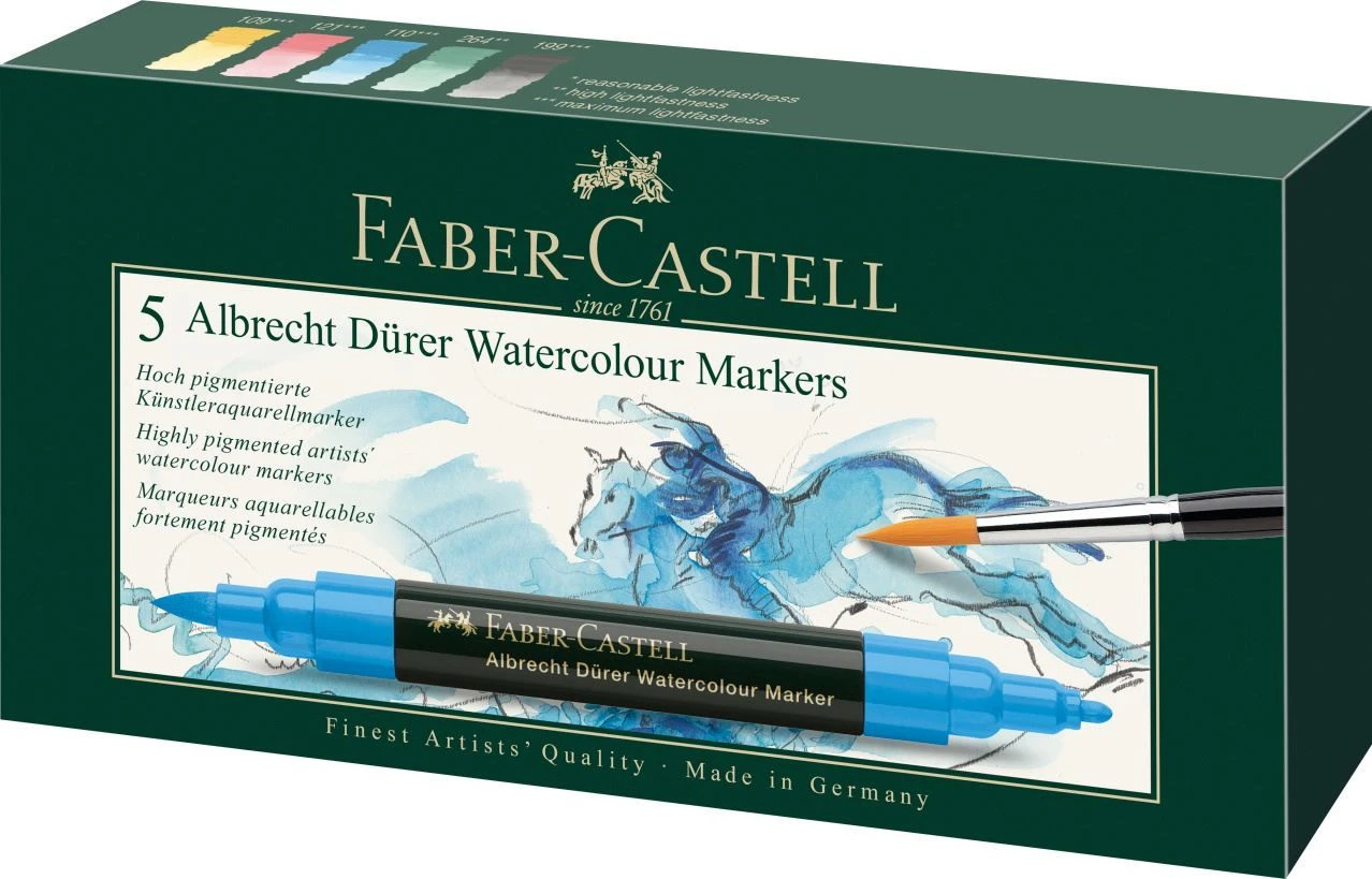 A set of 5 artist watercolour markers from the Faber-Castell Albrecht Dürer range.