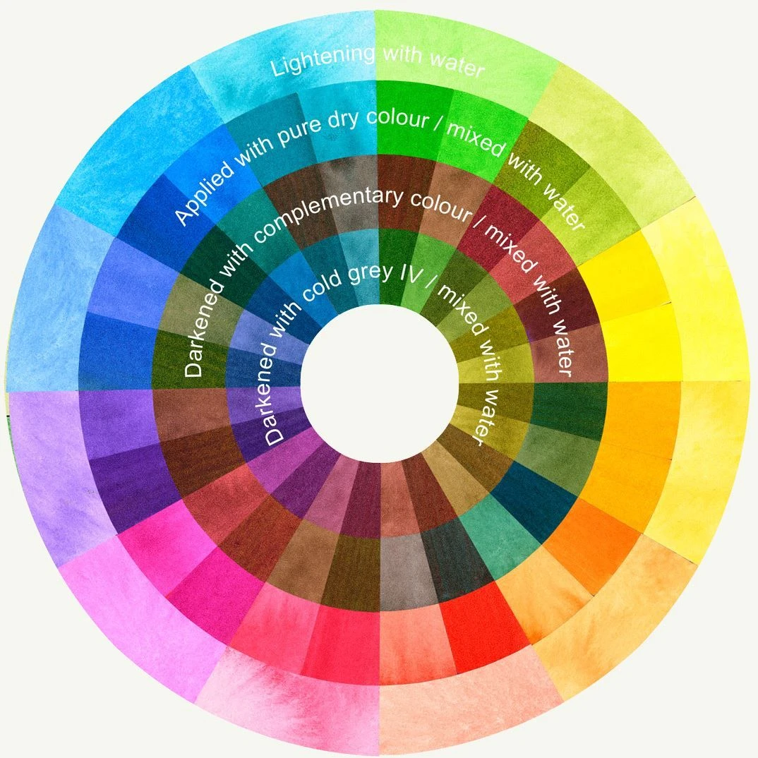 Colours included: 109 Dark Chrome Yellow, 121 Pale Geranium Lake, 110 Phthalo Blue, 264 Dark Phthalo Green, 199 Black.