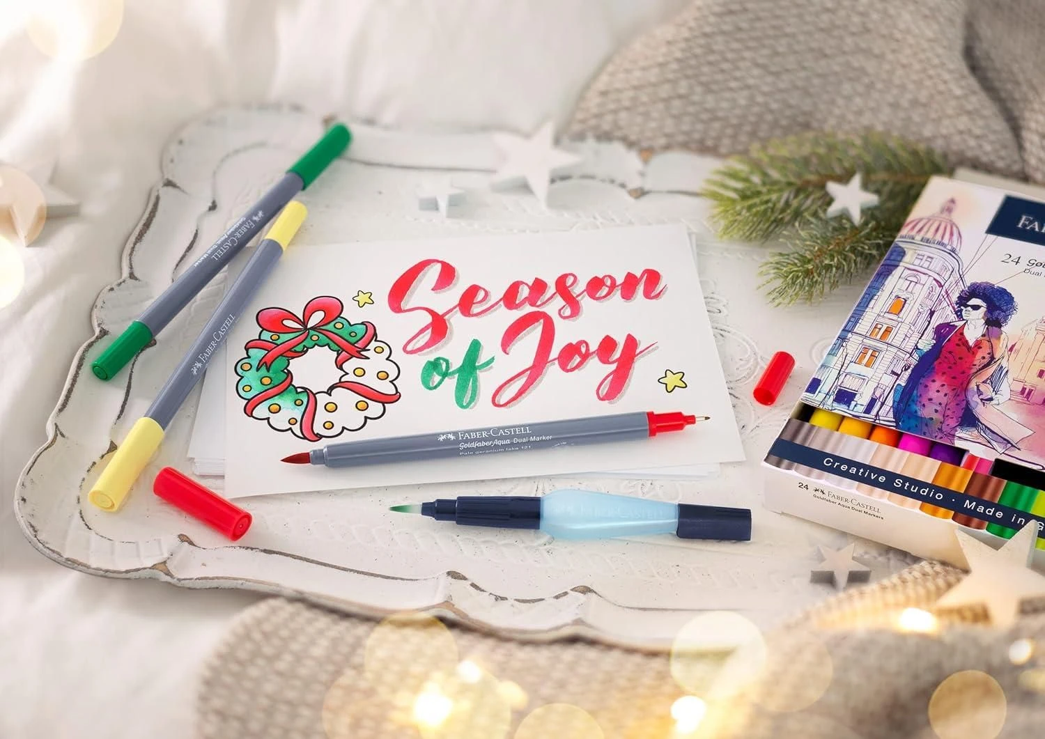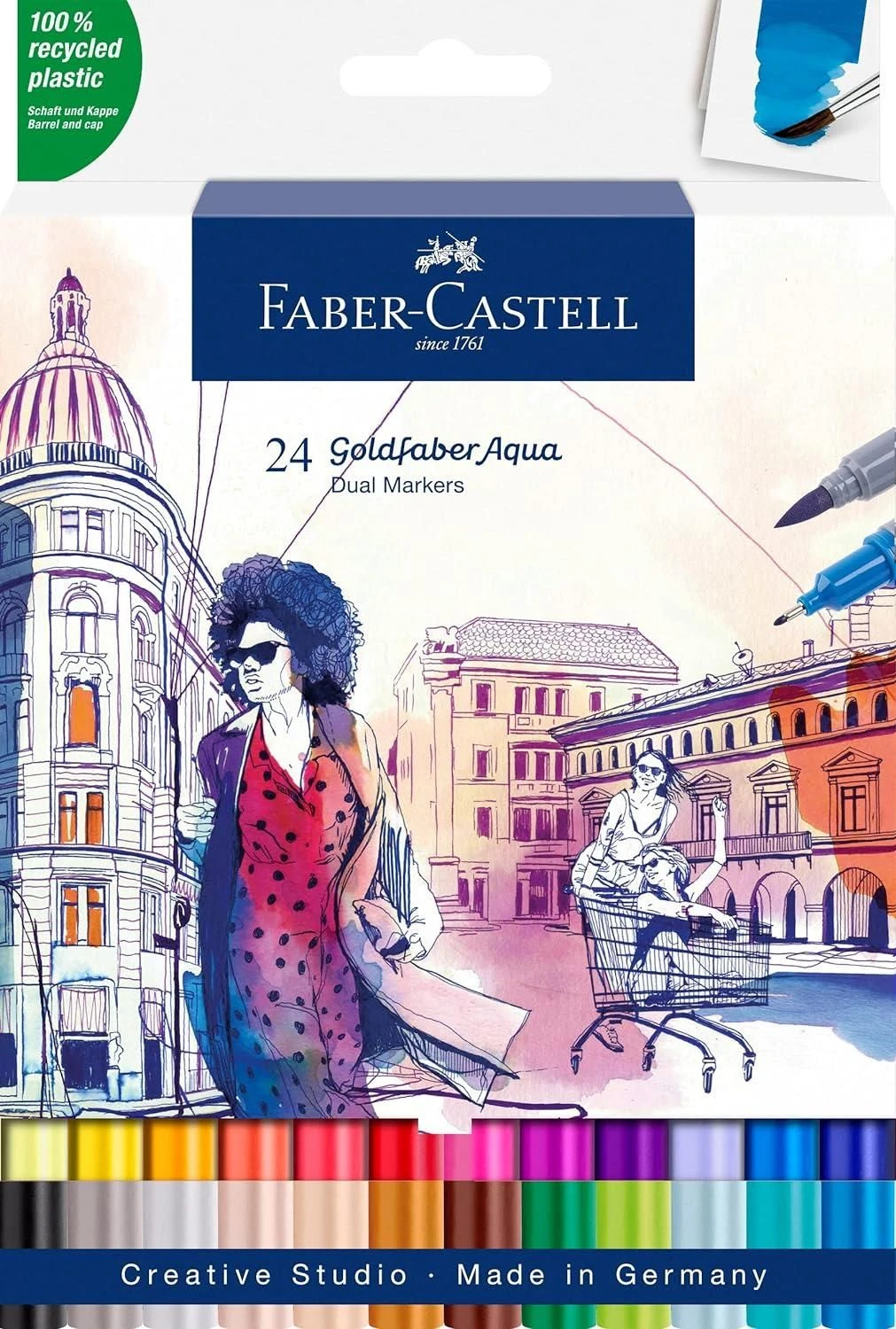 The multi-functional Goldfaber Aqua Dual Marker offers thousands of opportunities for creating stylish letterings, delicate watercolourings, preliminary sketches, colouring smaller areas and hatching or drawing precise contours. The water-based ink is ready at any time and can also be entirely washed out with water. Colours are streak-free and do not bleed through the paper.