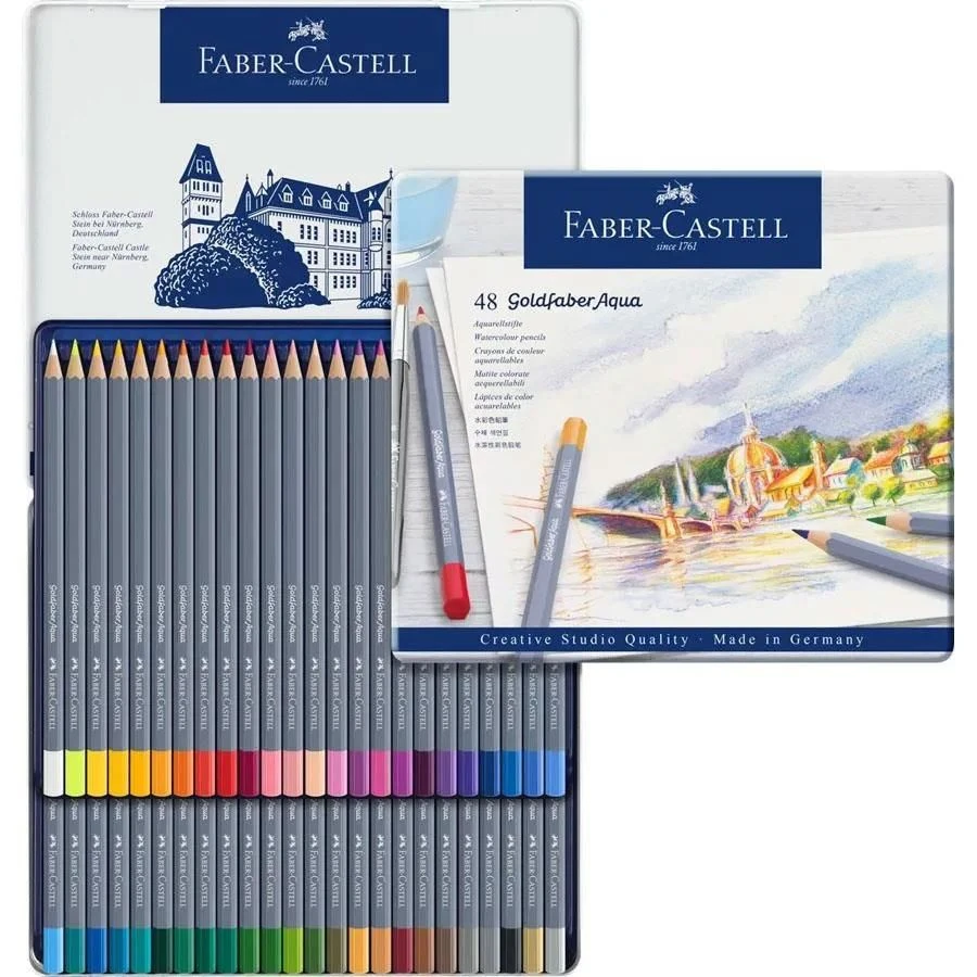 The Goldfaber Aqua watercolour pencils can be used for either dry or wet techniques. Using a wet paintbrush, stunning watercolour paintings can be created. The fully watersoluble lead of the Goldfaber Aqua waterolour pencil was produced with the most innovative production technology and impresses with its excellent lightfastness.