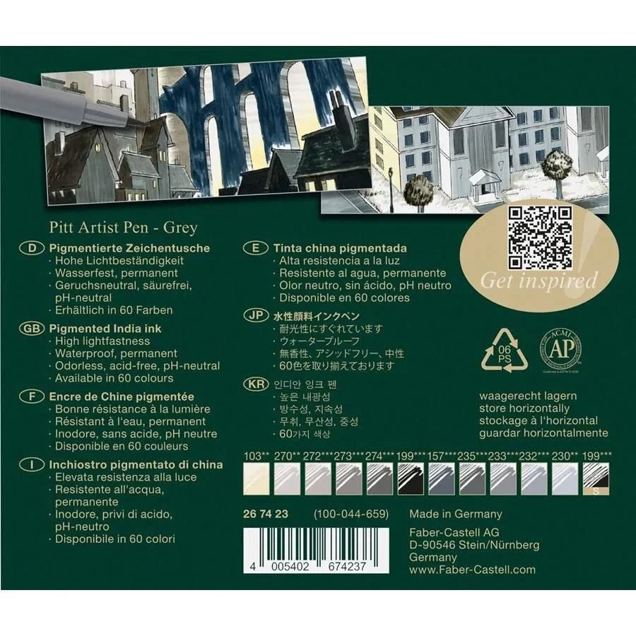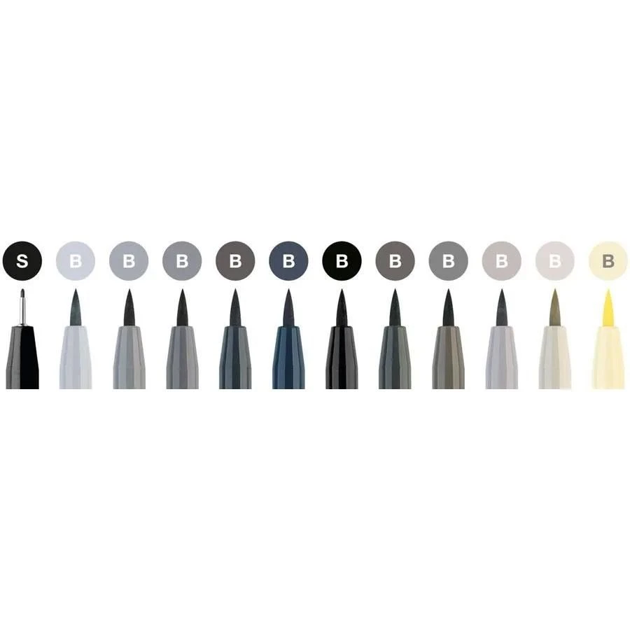 The Grey Set contents: 11 x B (Brush Tip) pens in colours 103, 270, 272, 273, 274, 199, 157, 235, 233, 232, 230 and 1 x 199 in S (Fine 0.3mm).