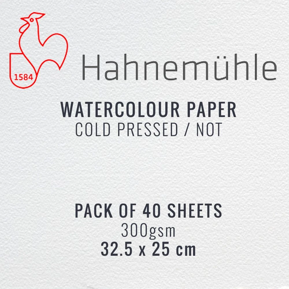 The Hahnemühle watercolour paper (300 gsm) is natural white, acid free, lightfast and extremely resistant to ageing. This pack contains custom sized cuts of the Britannia paper.