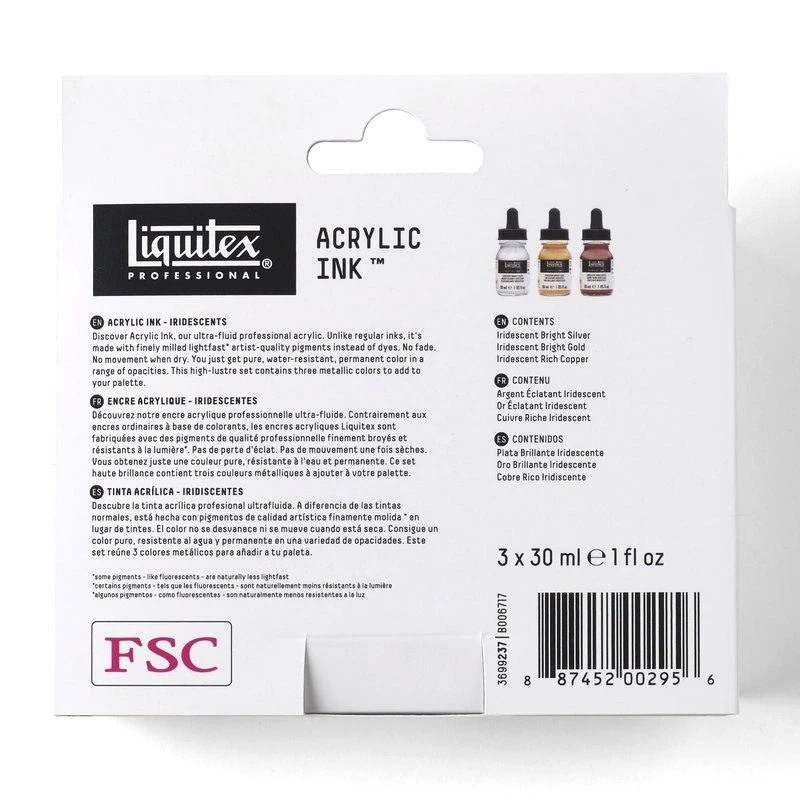 Liquitex Professional Acrylic Ink is a range of extremely fluid acrylic paints that use super-fine pigments in a state-of-the-art acrylic emulsion. Made with finely milled lightfast artist-quality pigments instead of dyes – no fade, no movement when dry. Water-resistant permanent colour.Â