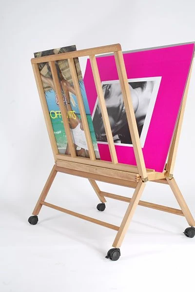 The MABEF M40 is a sturdy print rack that holds extra large prints, posters and paintings and is made from beed wood. The rack conveniently folds for shipping or storage and is equipped with casters for mobility. Perfect for displaying works at shows or fairs.
