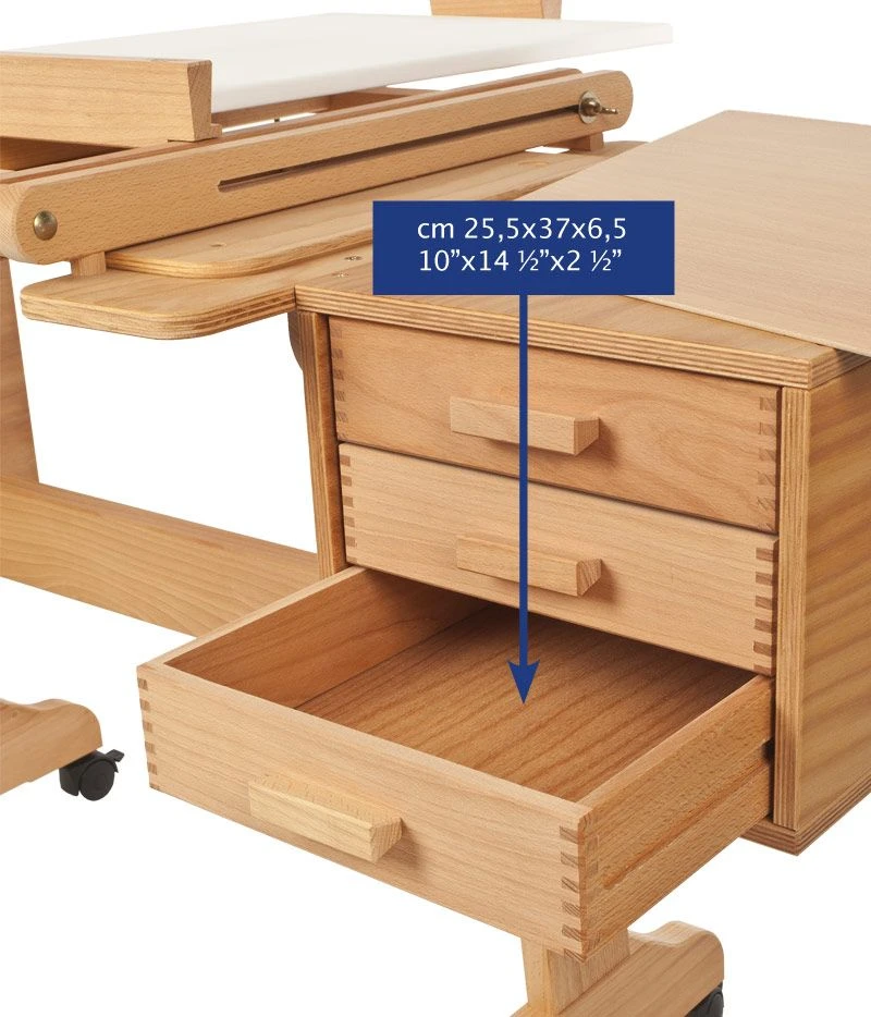 - 4 drawers for storage, which include both with and without inner organisational compartments and the 40cm tall sliding drawer which can hold books and brushes upright for easy access while painting.