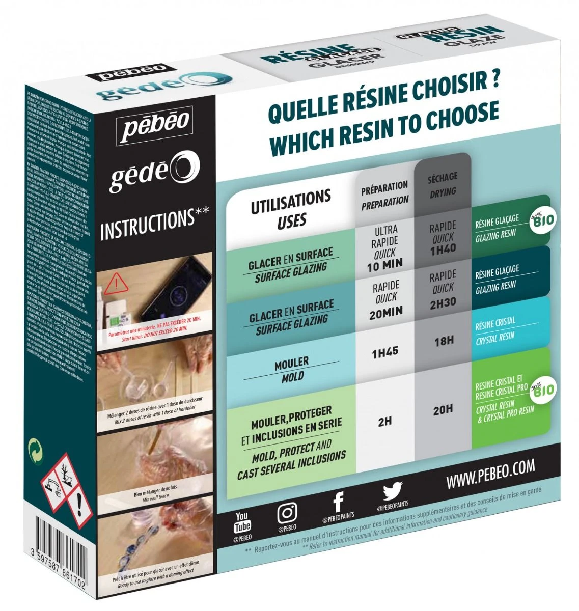 Tray bottoms, scrapbooking, coating, jewellery, effect “glass” on canvas, furniture decoration, tableware, card top boxes … Pebeo offers a range of Gedeo resin to increase opportunities for casting and thus meet all your expectations!
