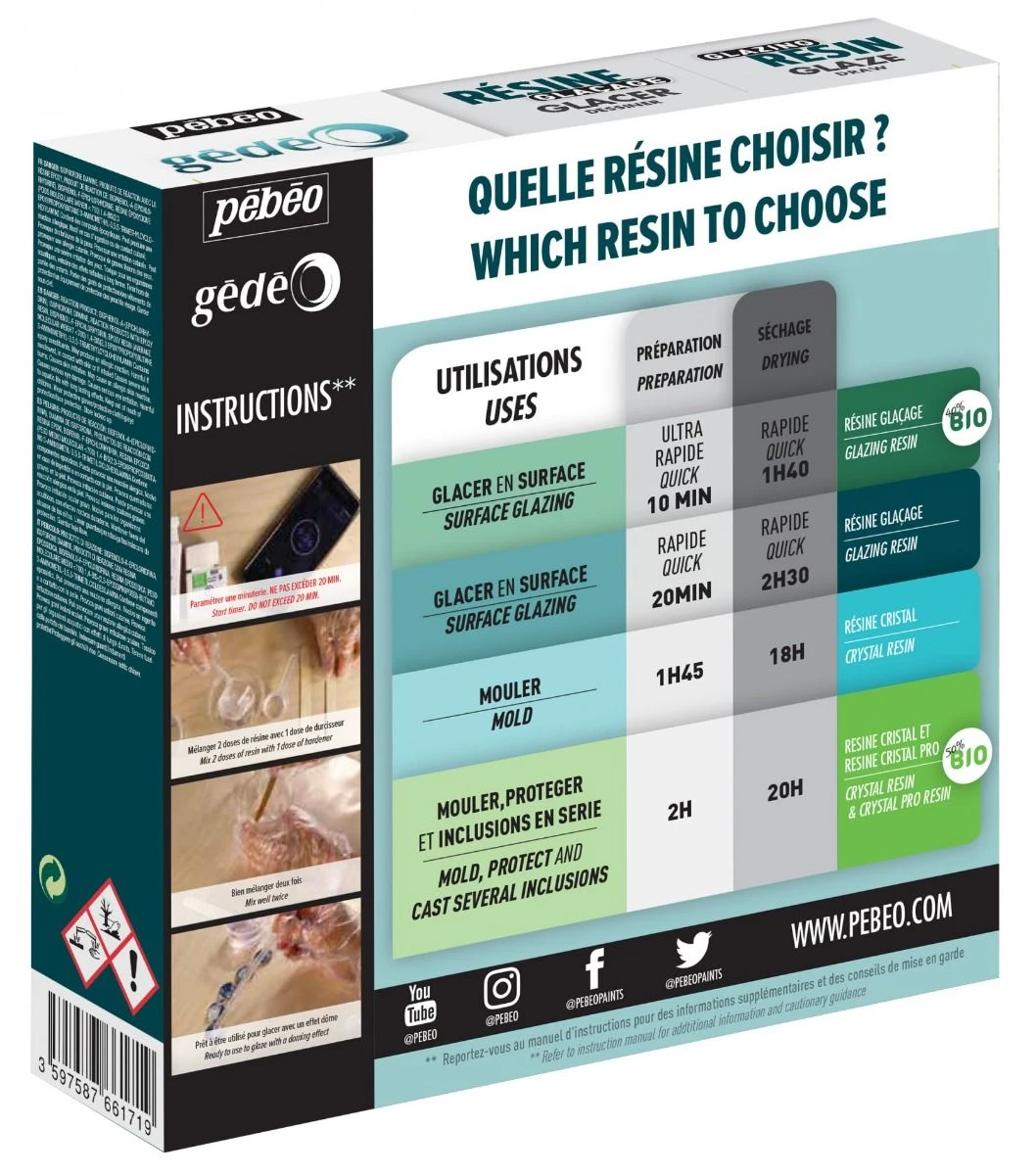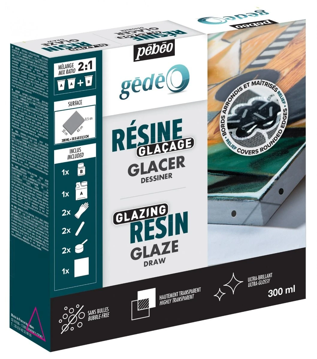 Tray bottoms, scrapbooking, coating, jewellery, effect “glass” on canvas, furniture decoration, tableware, card top boxes … Pebeo offers a range of Gedeo resin to increase opportunities for casting and thus meet all your expectations!