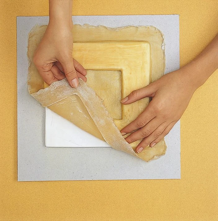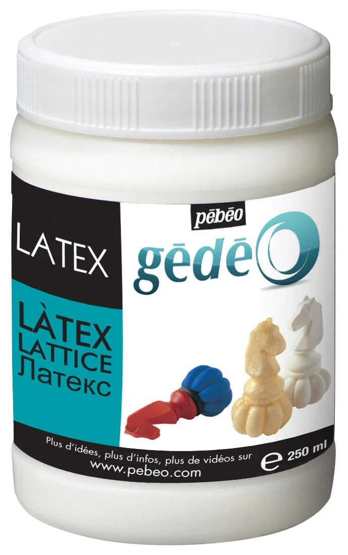 Apply the latex with a brush on the object to be moulded. Take care to protect your brushes by coating them with dishwashing liquid. Allow the first layer to dry 10 minutes. Apply a second coat. While still wet, place gauze to strengthen the mould and immediately apply a third layer on top. Allow to dry 10 minutes and apply a fourth layer. Allow to dry 6 hours. To prevent the latex from sticking to itself, sprinkle the outside of mould with Demoulding Talc and unmould. Pour the reproductive material: plaster, crystal resin, reconstituted Gedeo. Unmould. Let dry and decorate.