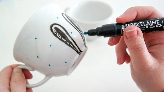 Porcelaine 150 can be applied to most heat-stable bases that are able to withstand a temperature of 150°C (300°F), such as porcelain, china, glazed earthenware, terracotta, metal, enameled sheet steel, copper and glass. The choice of base enables numerous effects to be produced and experiments to be made with the transparency and intensity of the colours. The markers are recommended for lines and writing. Shake well before use. Press tip repeatedly to start ink flow. Allow to air dry 72 hours for decorative use with light washing and no soaking. For dishwasher resistance (following recommendations), allow to air dry 24 hour after application then bake in oven for 35 minutes at 150°C (300°F).
