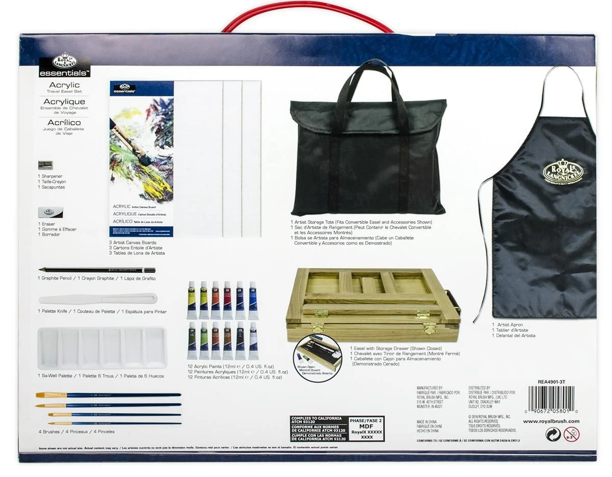 Perfect for travel and painting on the go, the Acrylic Travel Easel Set contains a huge selection of artist paints and accessories. Ideal for both beginner painters and experienced painters who wish to enhance their supplies.