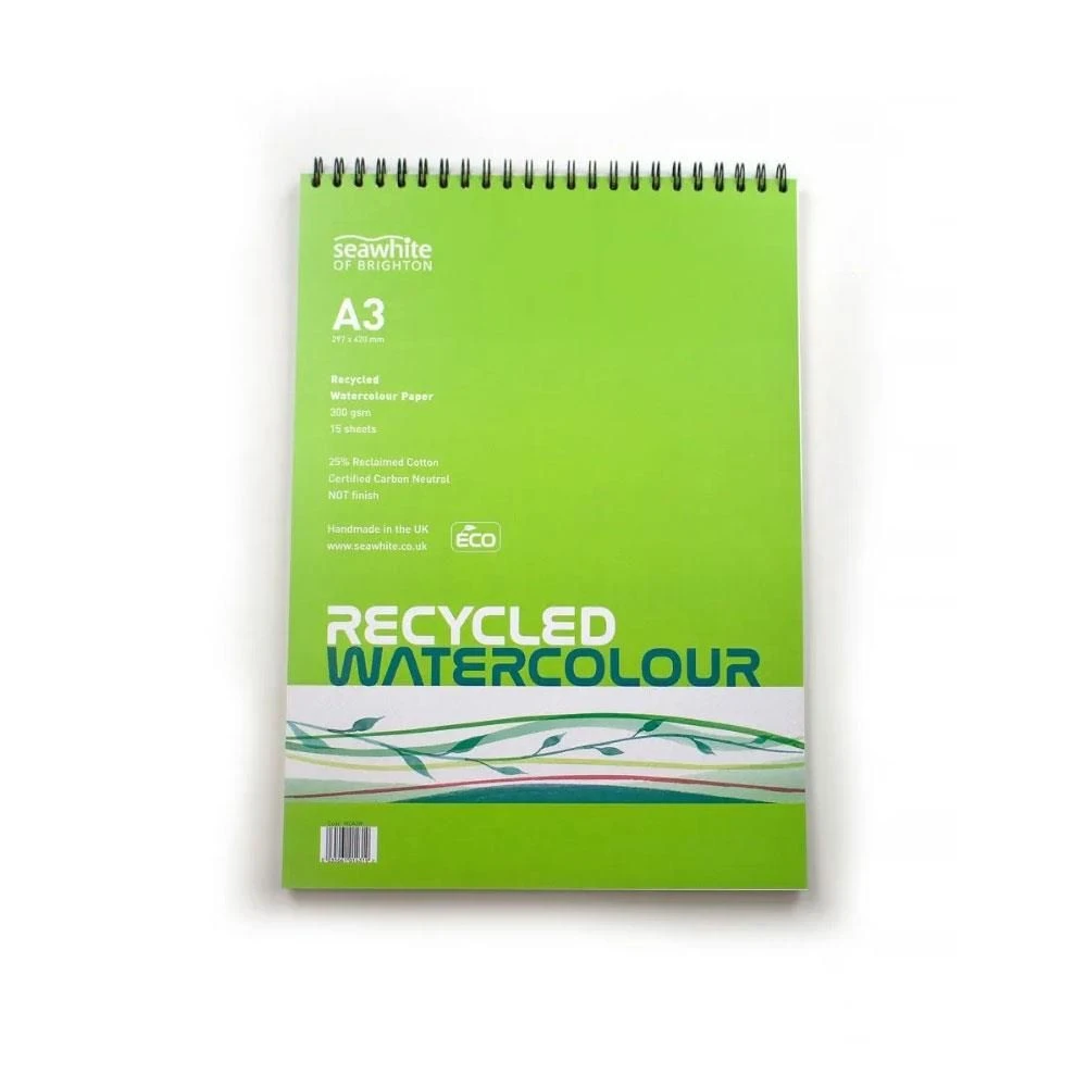 Each pad contains 15 sheets of 300gsm heavyweight environmentally-friendly watercolour. FSC, carbon-neutral and made from 25% reclaimed cotton content.