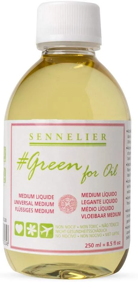 Green For Oil is part of the “bio-solvent” family, a safer, greener alternative to traditional solvents. Traditional organic solvents are highly effective, but concerns have been raised regarding their volatility and petroleum-based origins. This is why Sennelier has developed eco-friendly solvents with their new Green for Oil range.