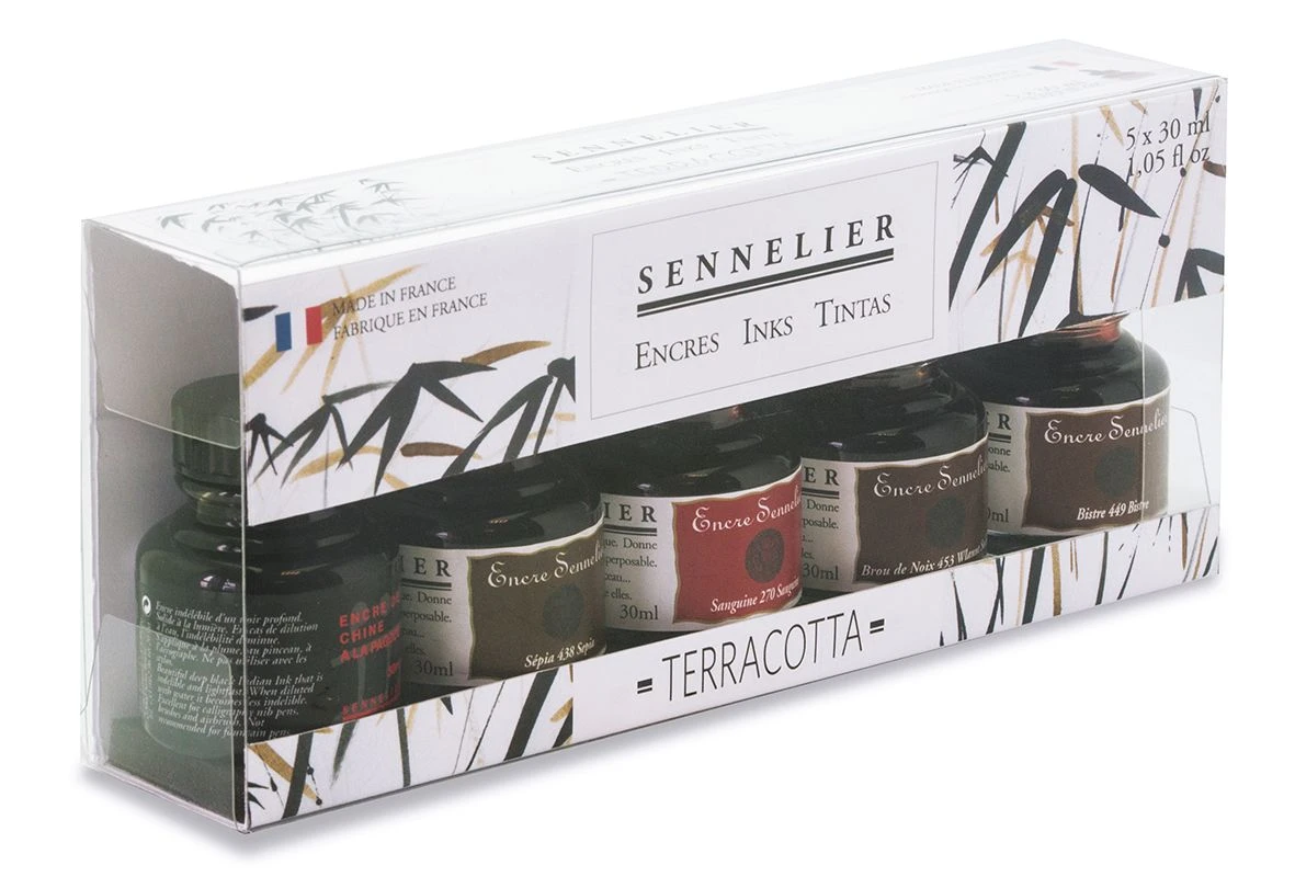 A colour coordinated box set of Sennelier natural shellac-based glossy ink.