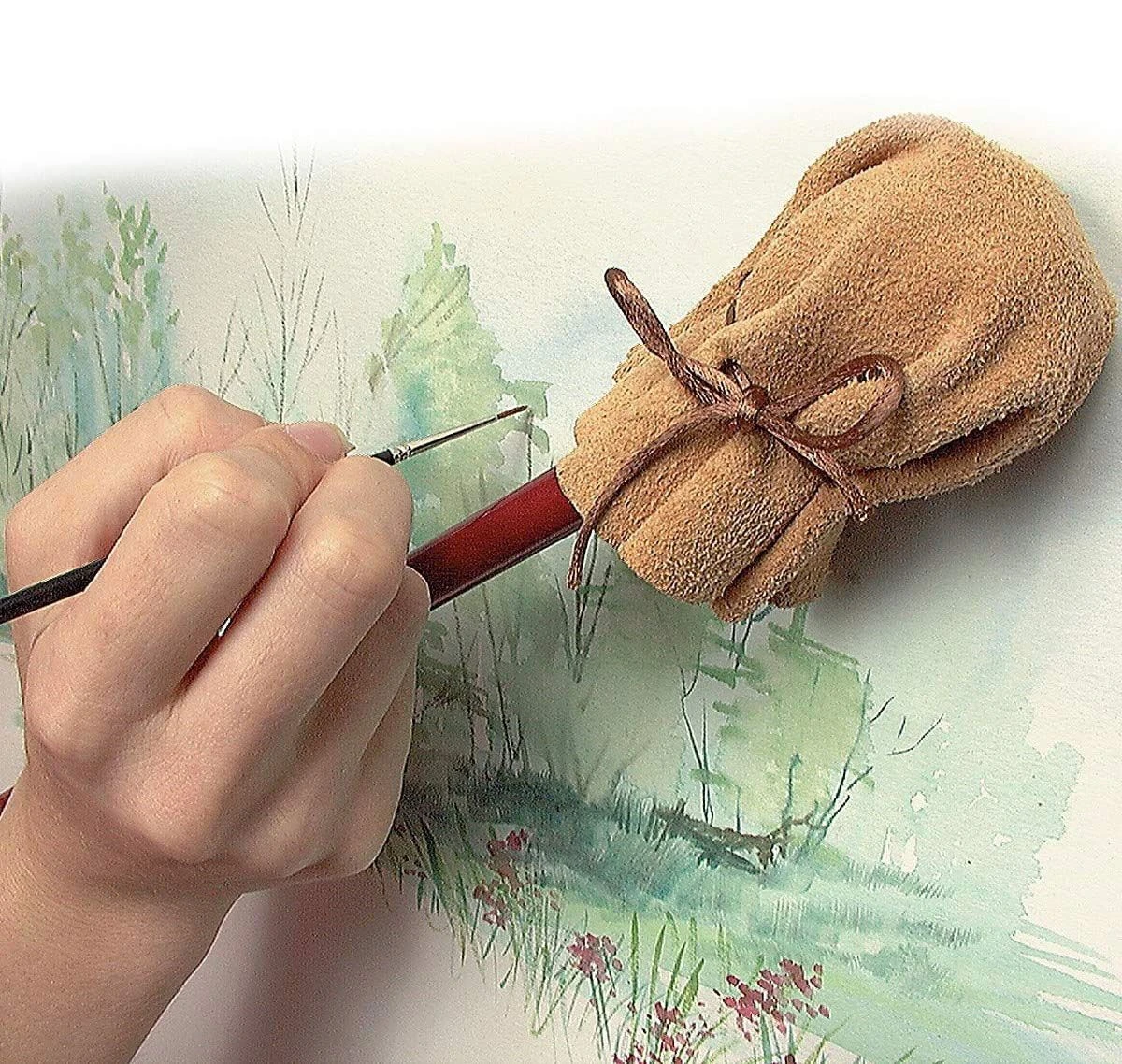 Mahl sticks (also known as painters sticks or painters rests) provides stable support for your hand or wrist when painting on a large scale or with slow drying mediums such as oils. By resting the leather cork end of the stick on the edge of the canvas or on a part already dry, you can then rest your working hand on the stick while moving the stick with your non-dominant hand as needed.