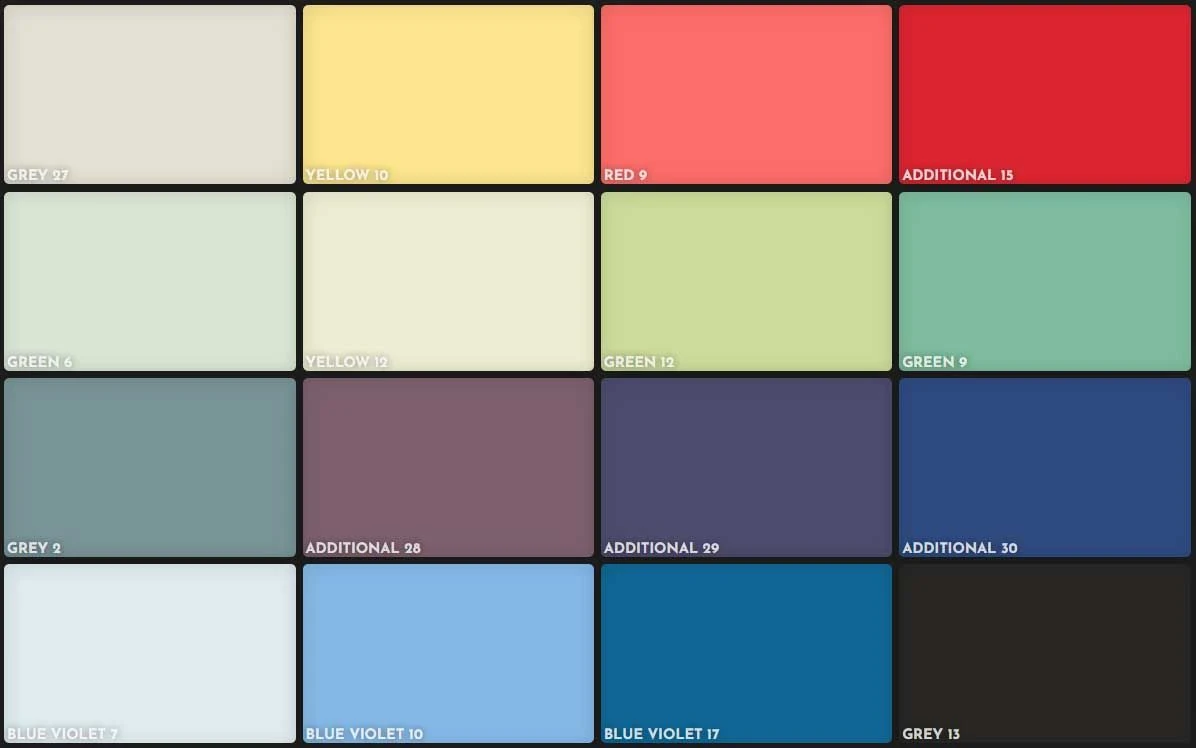 The Starter Half Stick 16 Set contains: Grey 27, Yellow 10, Red 9, Additional 15, Green 6, Yellow 12, Green 12, Green 9, Grey 2, Additional 28, Additional 29, Additional 30, Blue Violet 7, Blue Violet 10, Blue Violet 17, Grey 13.