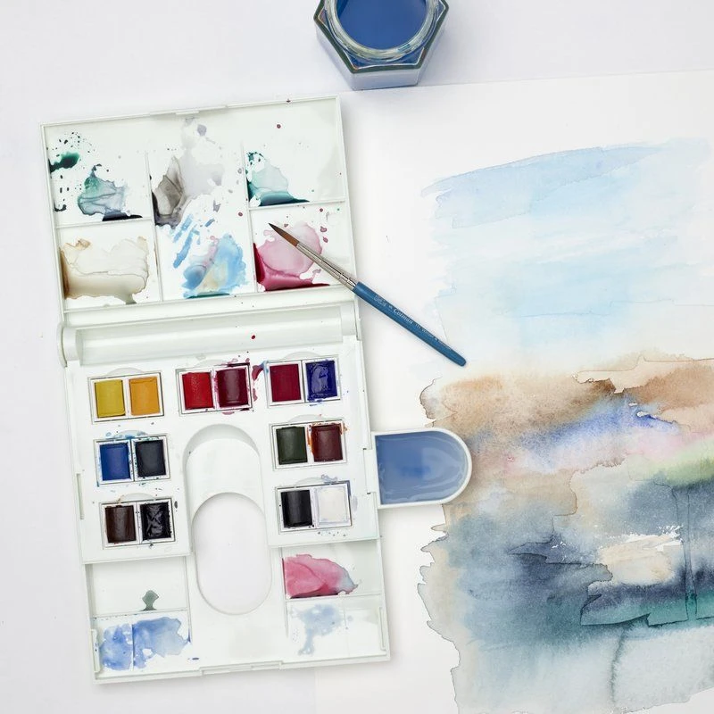 14 Cotman Watercolours made with quality, fine art pigments in a travel set. This set is ideal for outdoor watercolour painting, especially for extensive colour mixing.