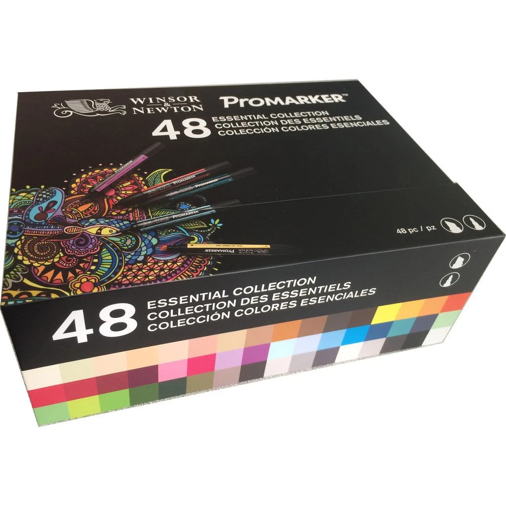 48 essential colours from the ever popular Promarker pen range from Winsor & Newton. Contained in an attractive integrated storage box with a magnetic closure.